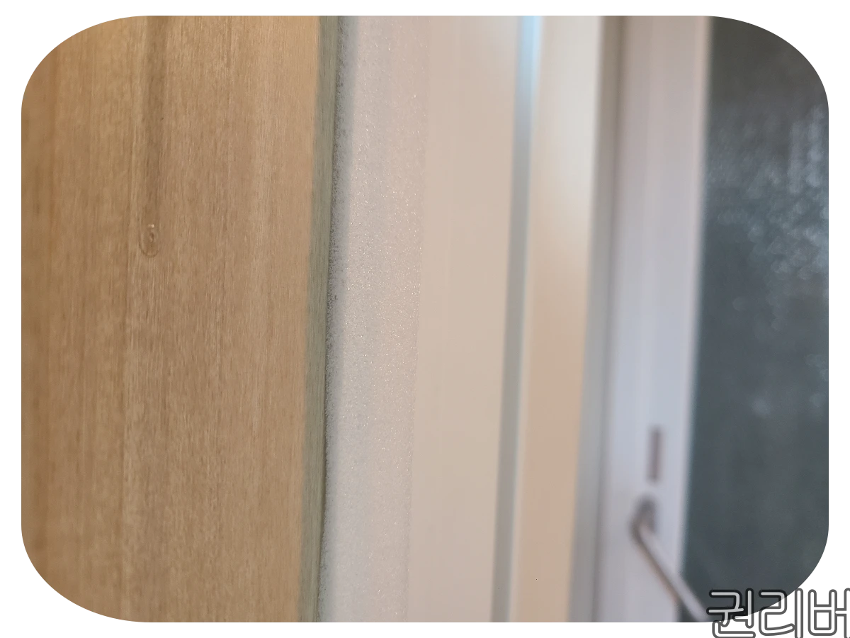 다만, 문틀에 붙인 경우 문이 닫힐 때 쓸고 가면서 스스륵하는 소리가 날 수 있습니다. 완벽한 차단을 위해서 문풍지가 문과 문틀 사이로 끼어 들어가야 하므로 소리는 어쩔 수 없습니다. 문을 끝까지 닫을 때만 소리가 나니 평소에는 거슬리거나 하지 않습니다.