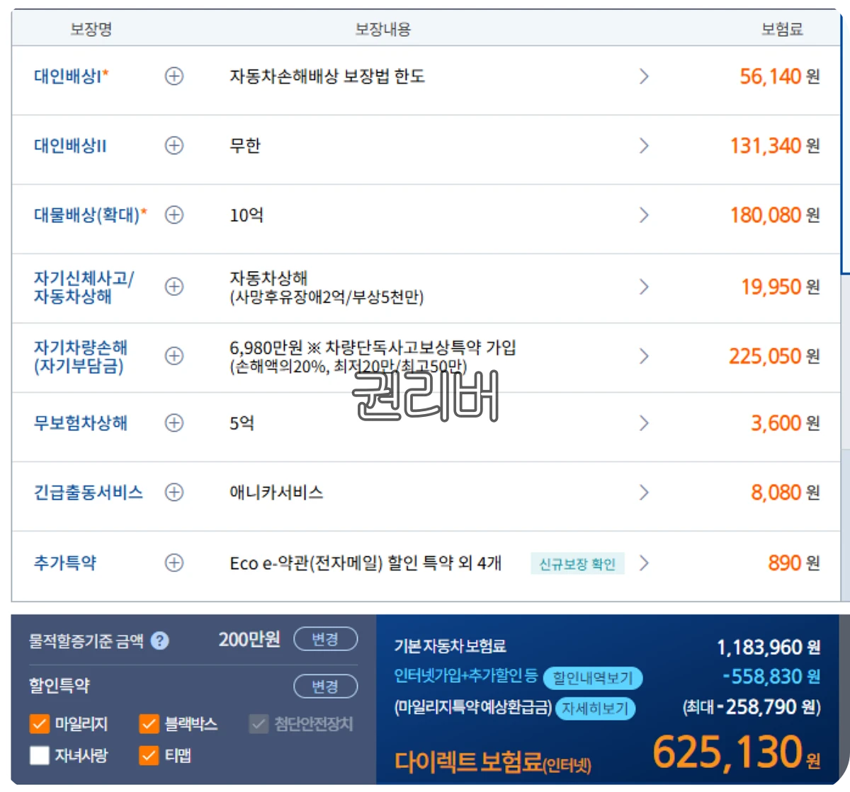자동차 보험료 625,130 원 444,570 원