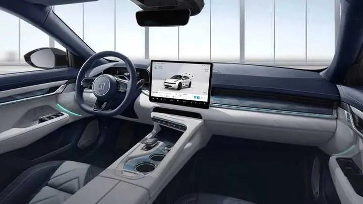 지커 001의 실내에는 14.7인치의 거대한 센터 디스플레이가 탑재되어 있습니다. 그 밖에 자잘한 디자인은 필요없다는 듯이 대시보드는 깔끔함 그 자체입니다.