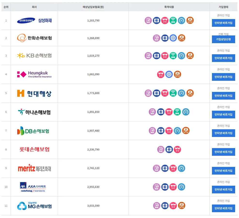 물론 이는 제 기준이기 때문에 차를 사고 보험에 가입할 때에는 최대한 많은 곳에서 조회를 하는 것이 좋습니다. 보험다모아를 이용하여 저렴한 곳을 추려낸 뒤 일부 회사만 따로 조회하면 시간을 아낄 수 있습니다.